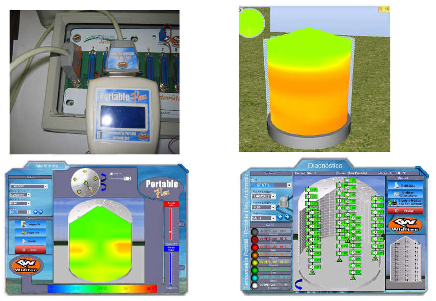Utilizamos a termometria da Widitec (empresa referência no setor) com o objetivo de monitorar a temperatura na massa de grãos.